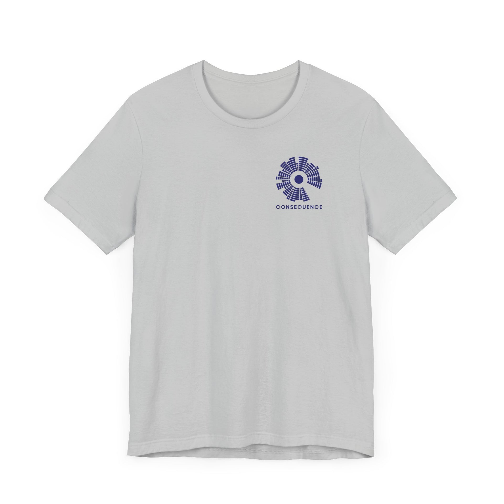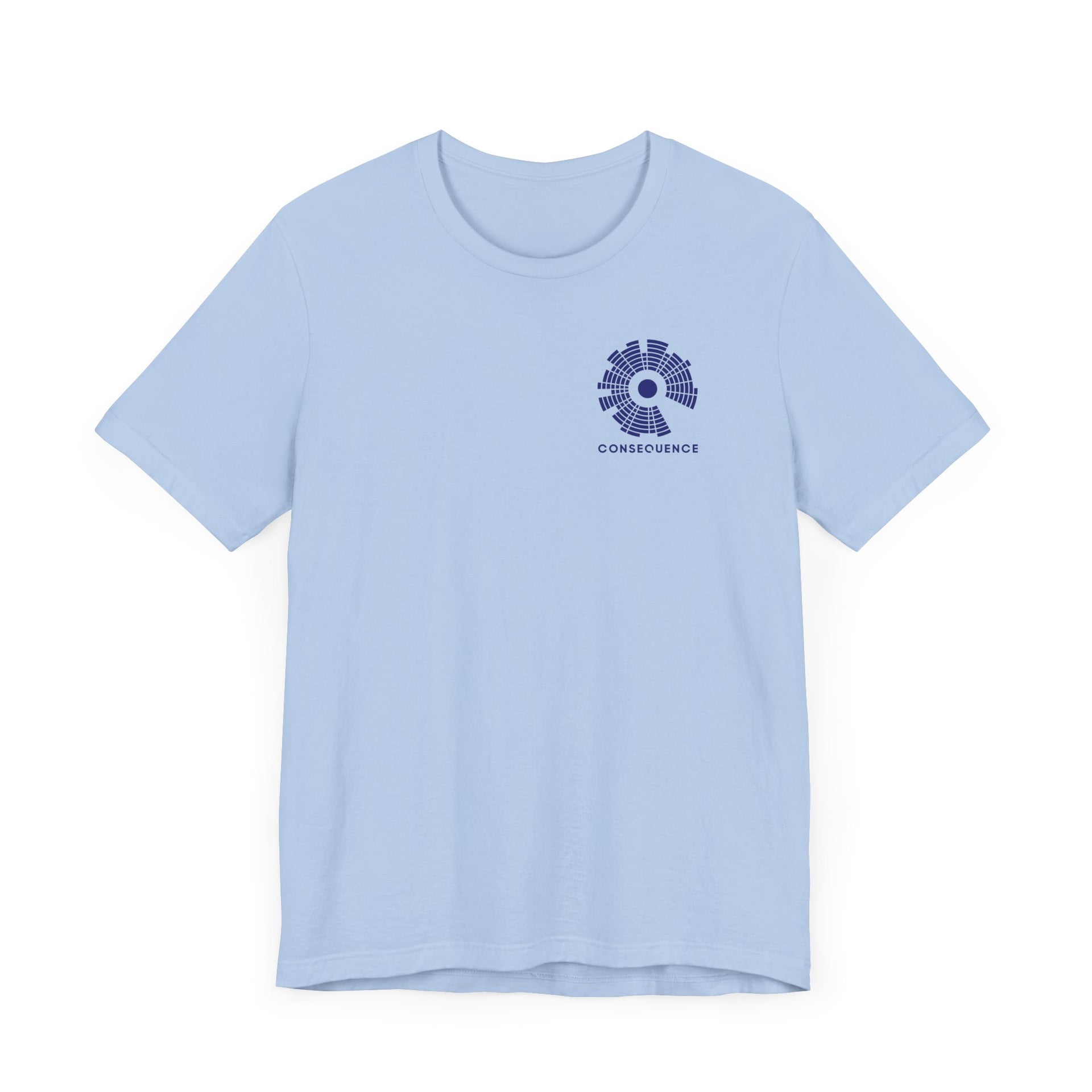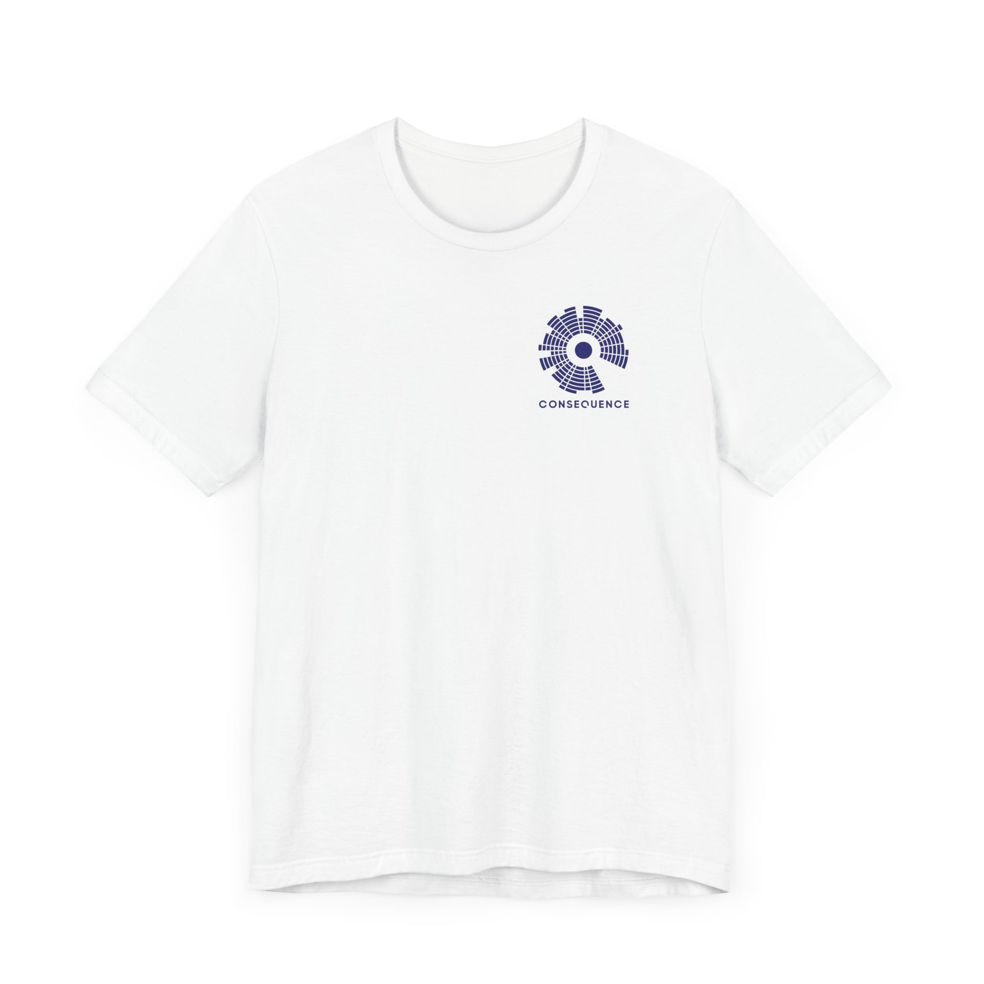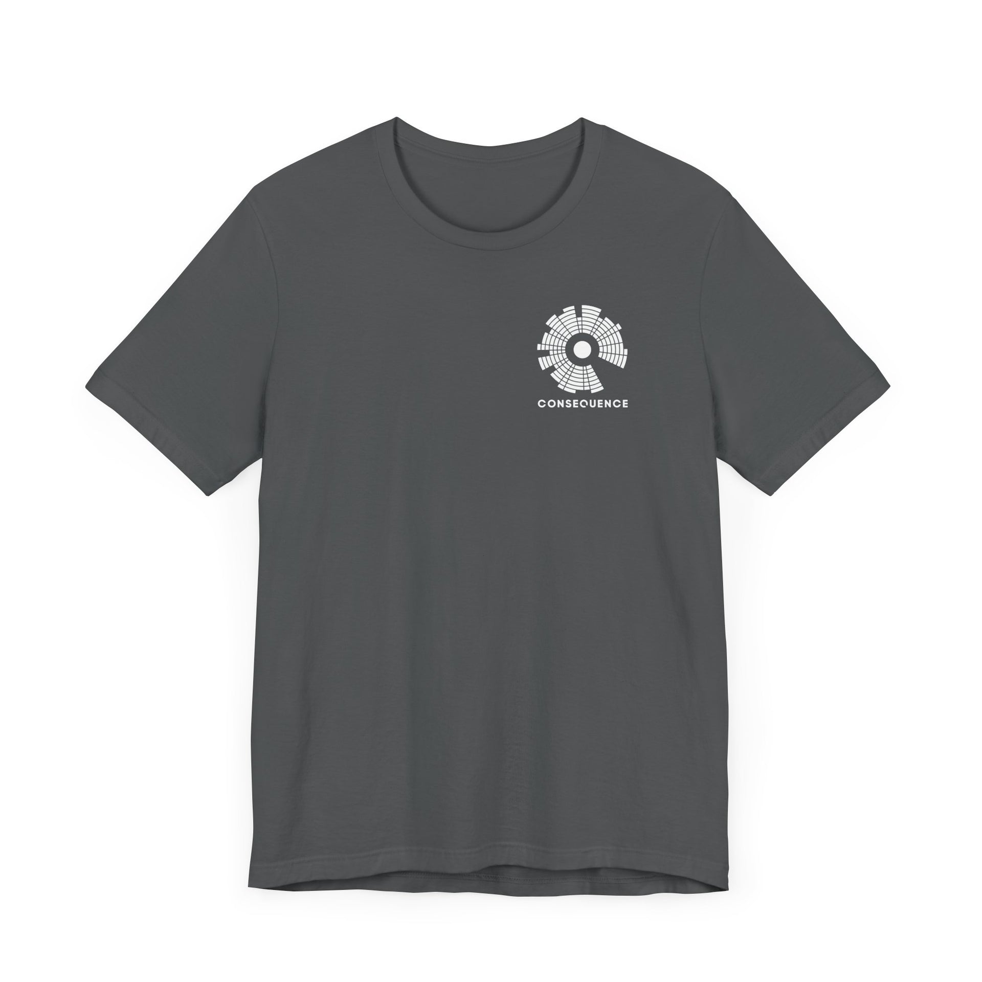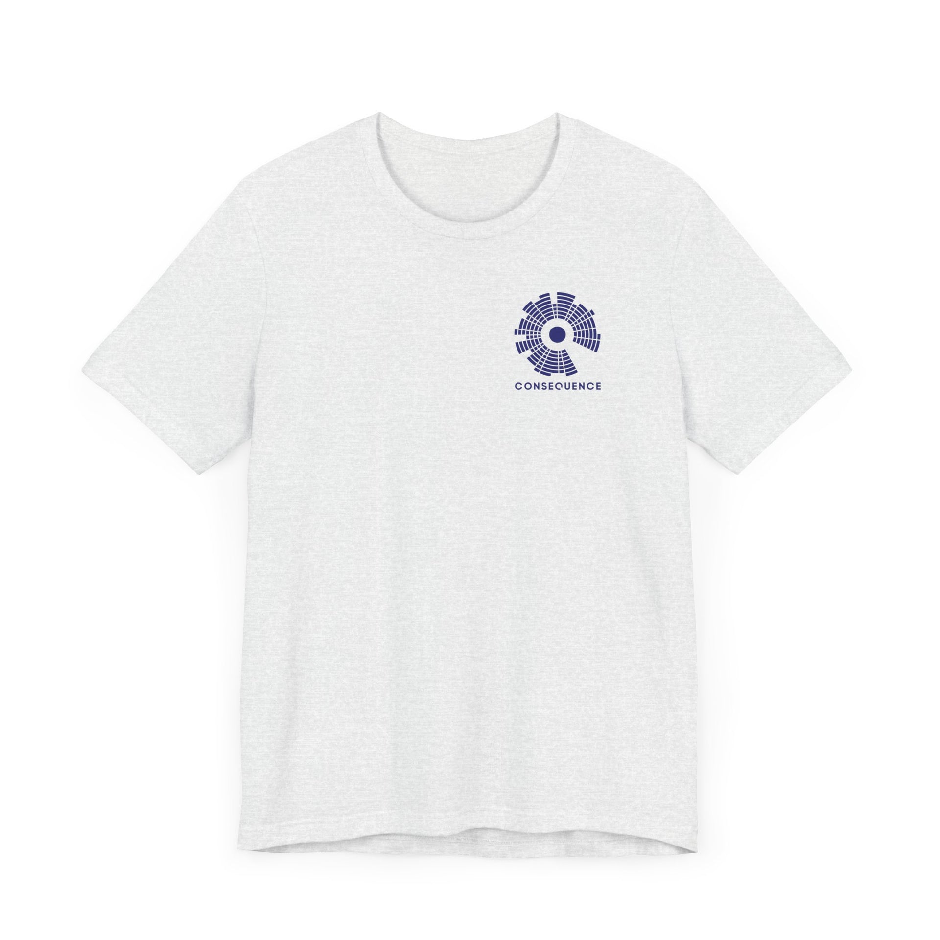 Step into effortless style with the Consequence Logo Tee, designed for fans who value both fashion and comfort. Showcasing our striking new logo on the front and back, this unisex crewneck tee is a wardrobe essential. Made from ultra-soft cotton with a premium-quality print, it's built to feel like your favorite shirt from day one. Thoughtful details like ribbed knit collars, tapered shoulders, and dual side seams ensure a lasting fit and durable shape over time. Available in a range of classic and versatile colors – athletic grey, white, baby blue, black, heather navy, and ash – this tee is perfect for any occasion. Elevate your casual look with this timeless piece from Consequence.