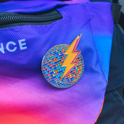 Featuring our gradiated disco ball and lightning bolt, this soft enamel pin is perfect for decking yourself out — or adding a bit more party to your discogasm fanny pack!