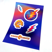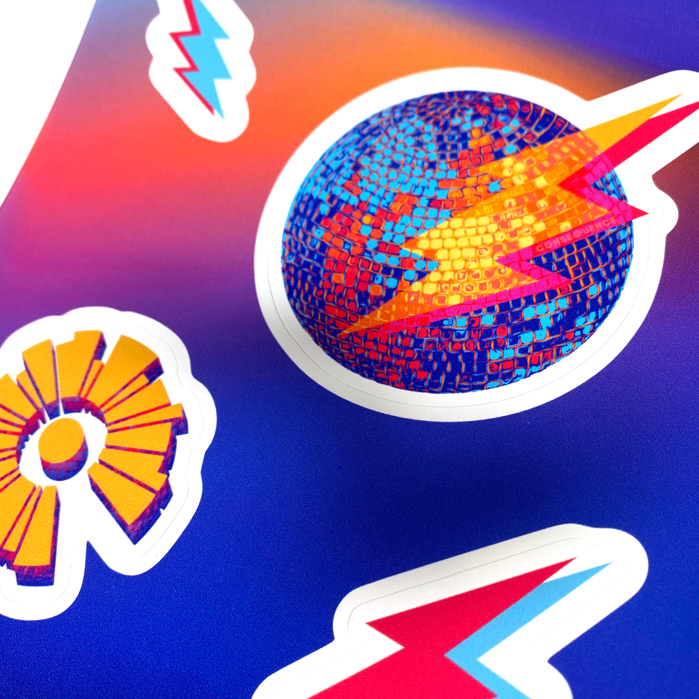 Disco-fy all your festival gear with this sheet of glossy stickers. With the discogasm disco ball and lightning bolt, single bolts, and the Consequence logo all printed in vibrant colors, you can give anything an extra glow.