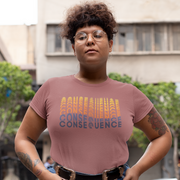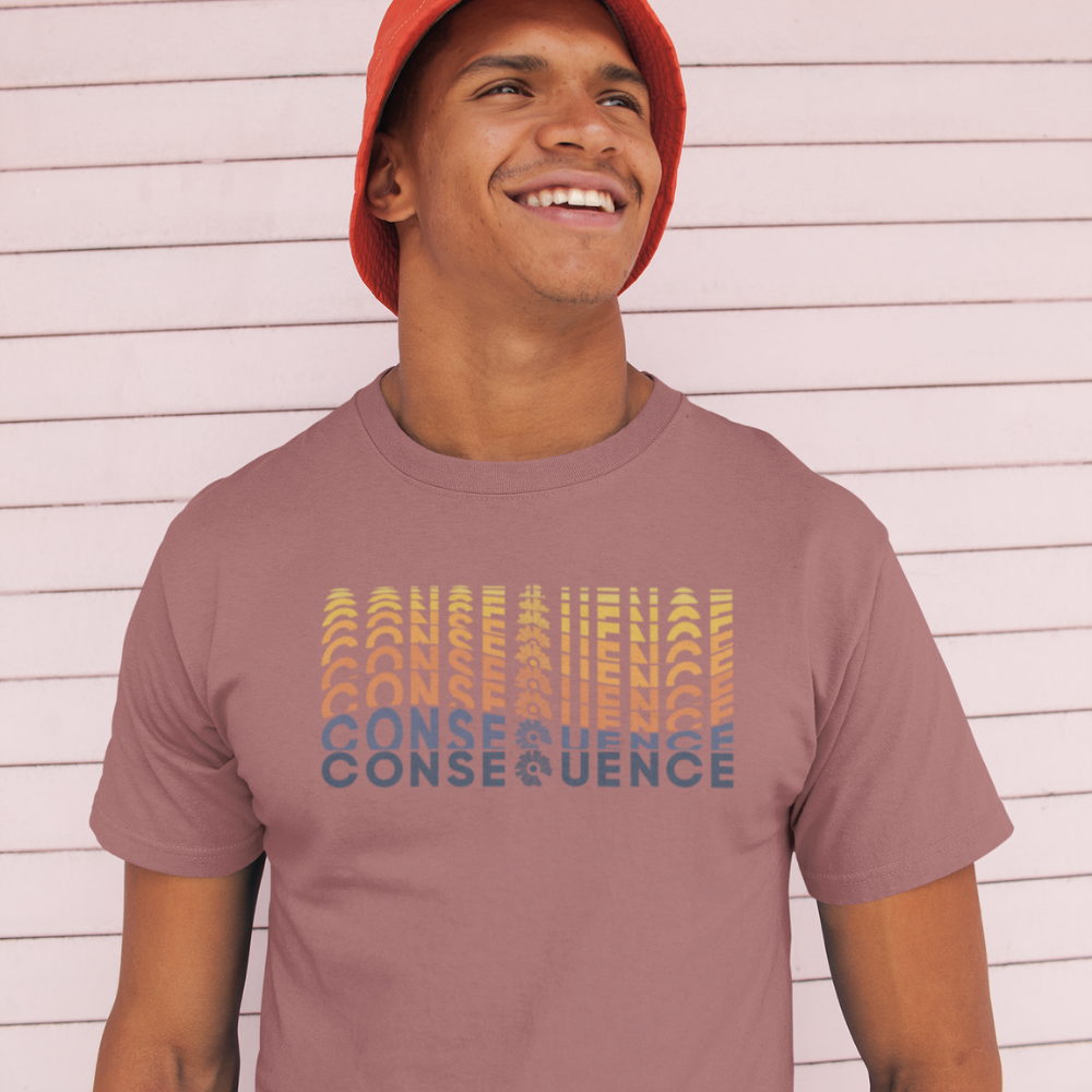 It's Consequence, only groovier! Our logo takes on a retro look with this brand new shirt design.
