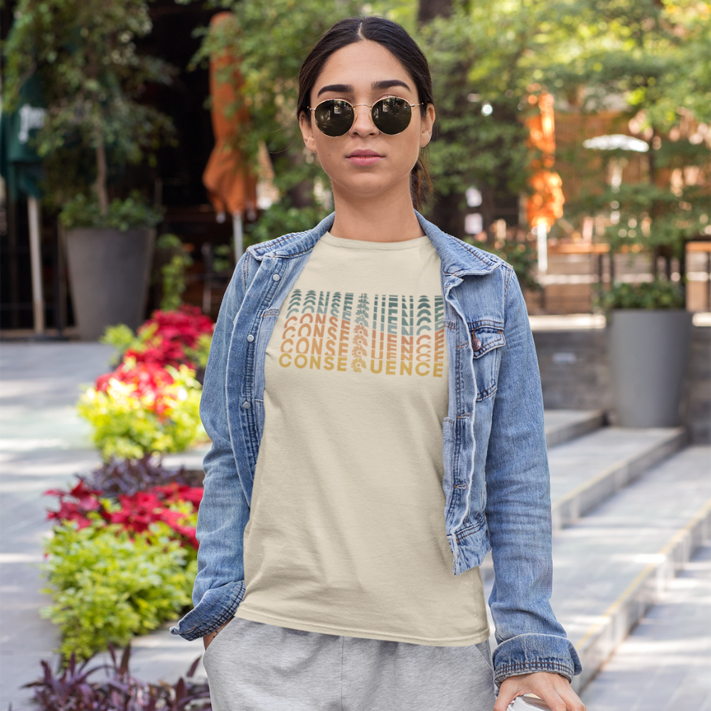 It's Consequence, only groovier! Our logo takes on a retro look with this brand new shirt design.