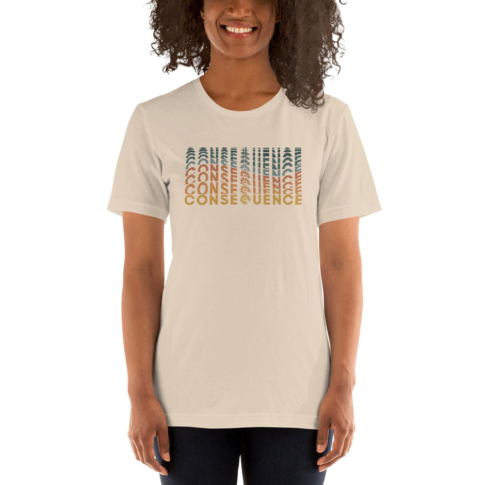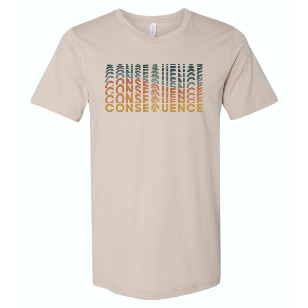 Our latest logo T-shirt gives a groovy feel to the Consequence name. Printed on a soft, lightweight, unisex tan-colored tee, it's the same publication you've always loved with an updated style.