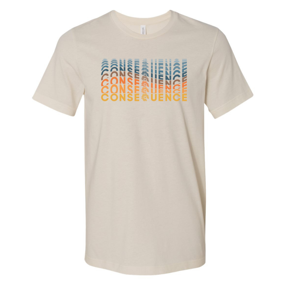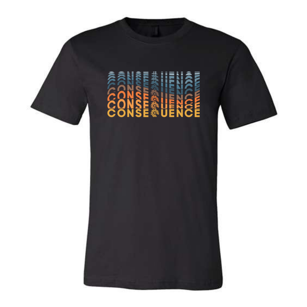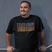 It's Consequence, only groovier! Our logo takes on a retro look with this brand new shirt design.