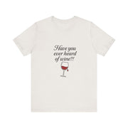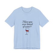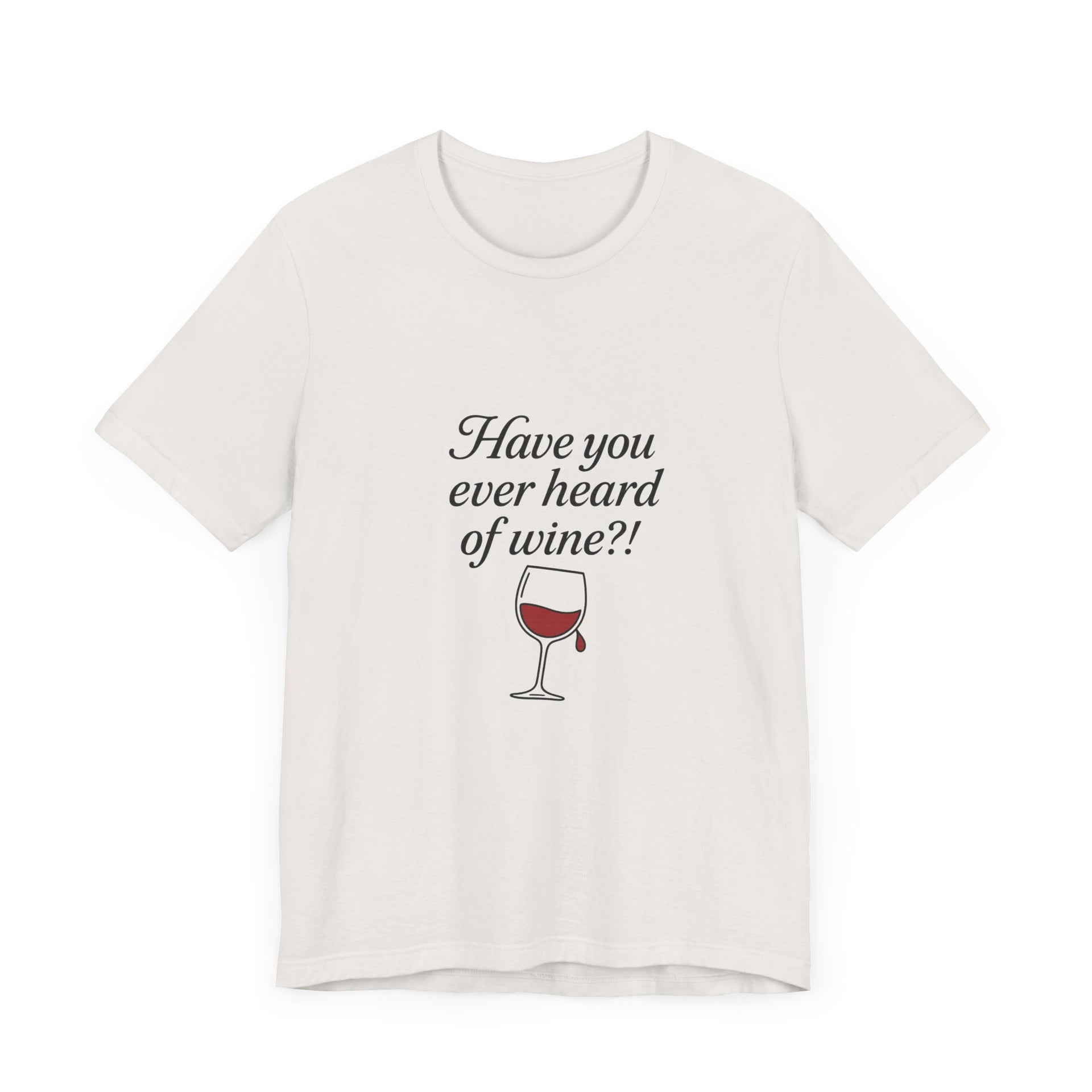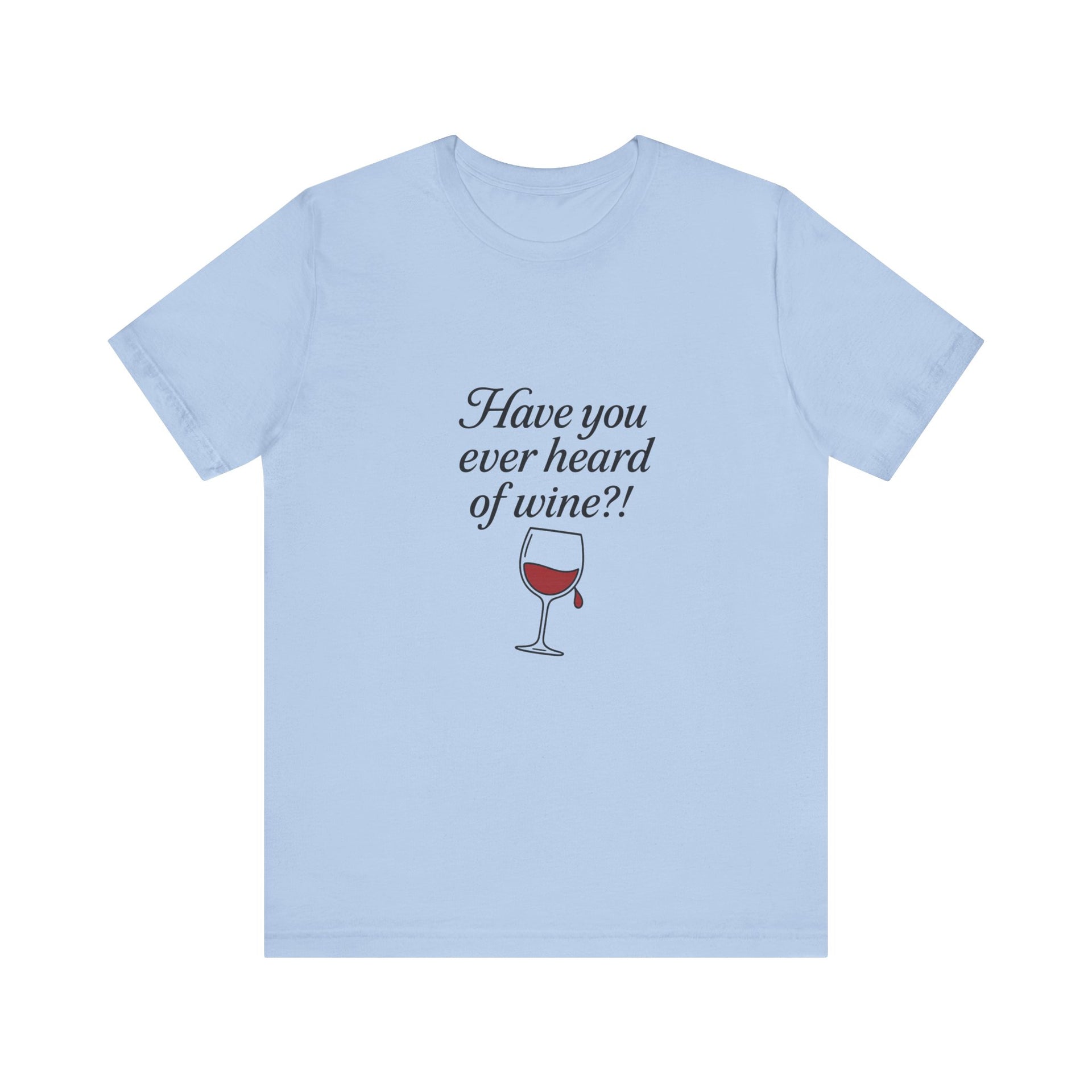 Featuring the iconic line, “Have you ever heard of wine?!” in elegant, bold cursive, this shirt captures the sharp wit and luxurious drama of the show. Below the text, a sleek wine glass graphic adds a minimalist yet striking touch, complete with a drop of red wine for that extra flair.