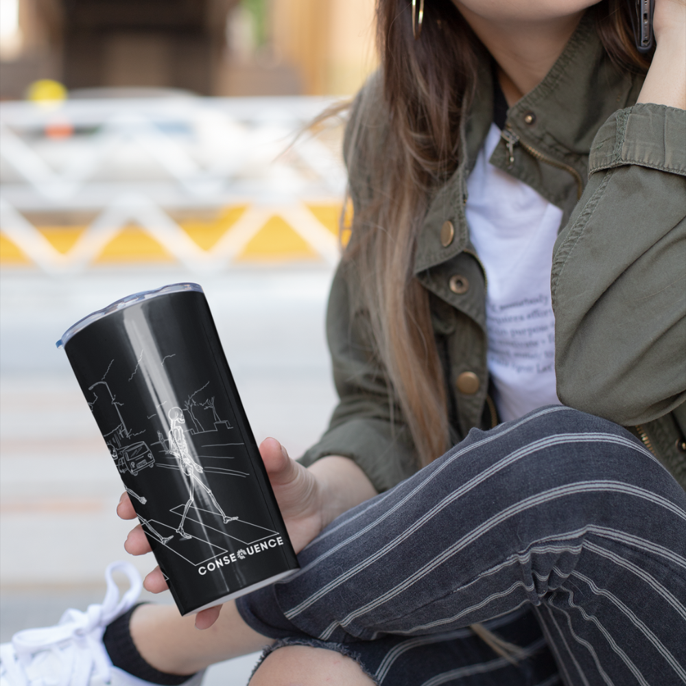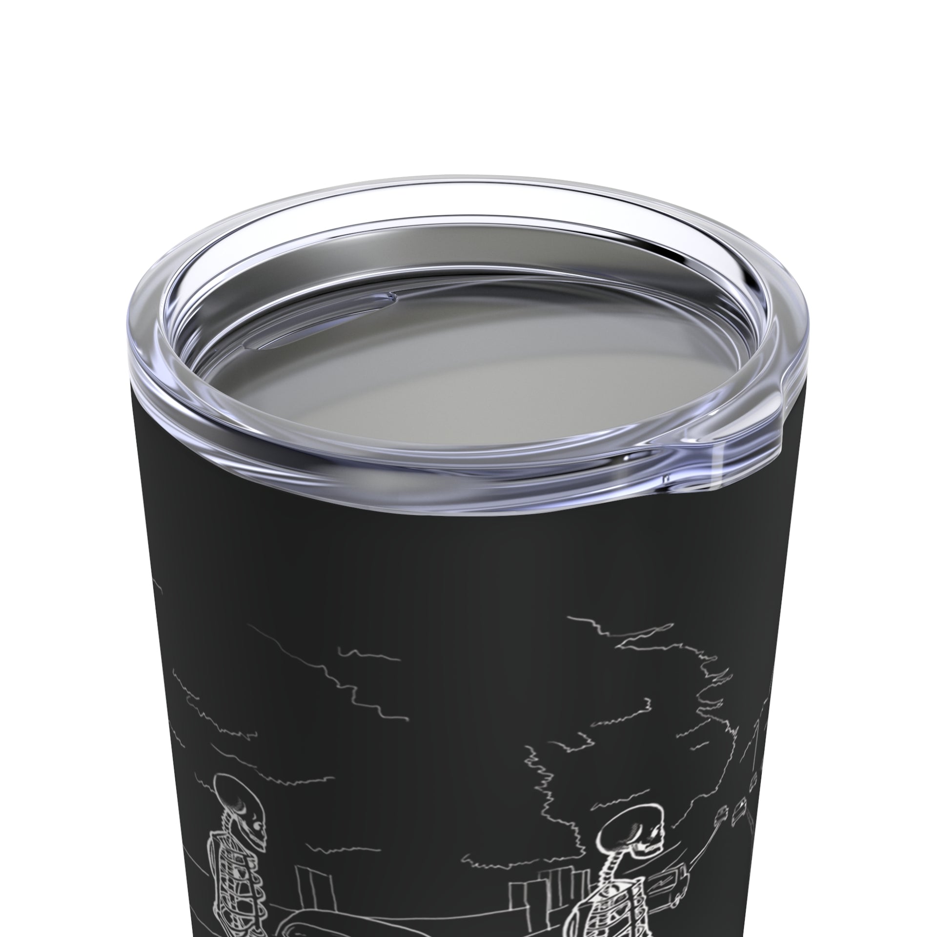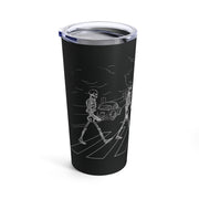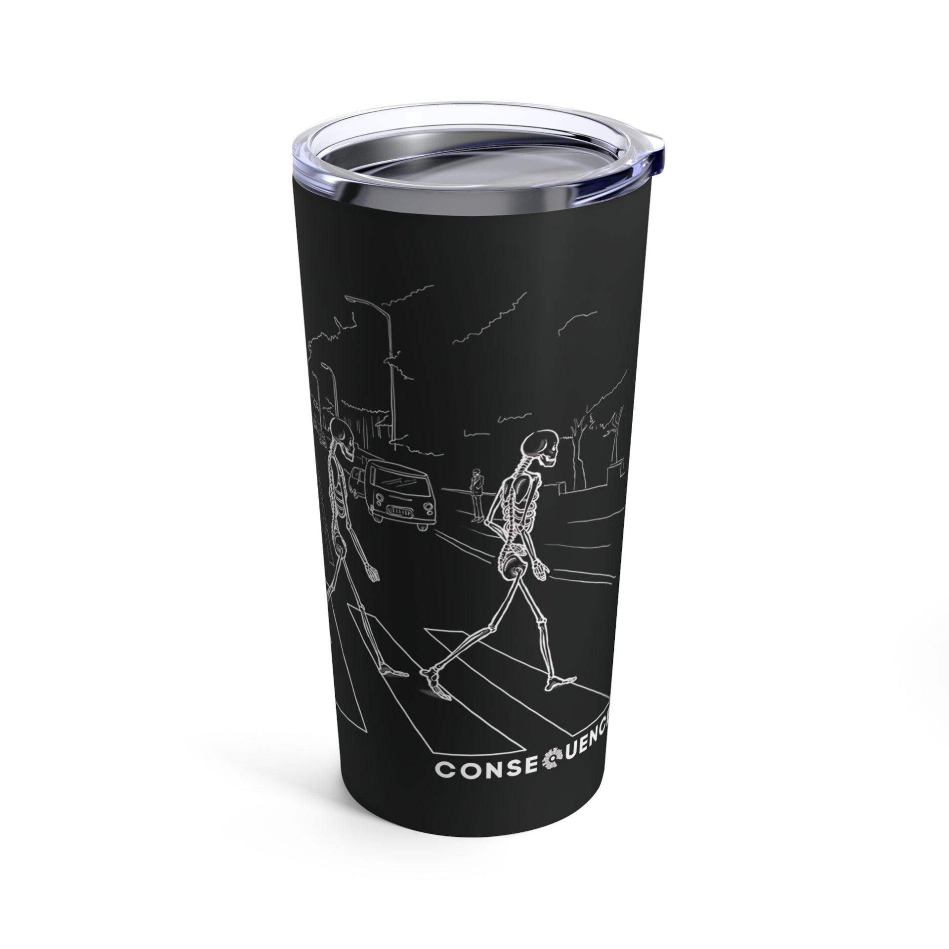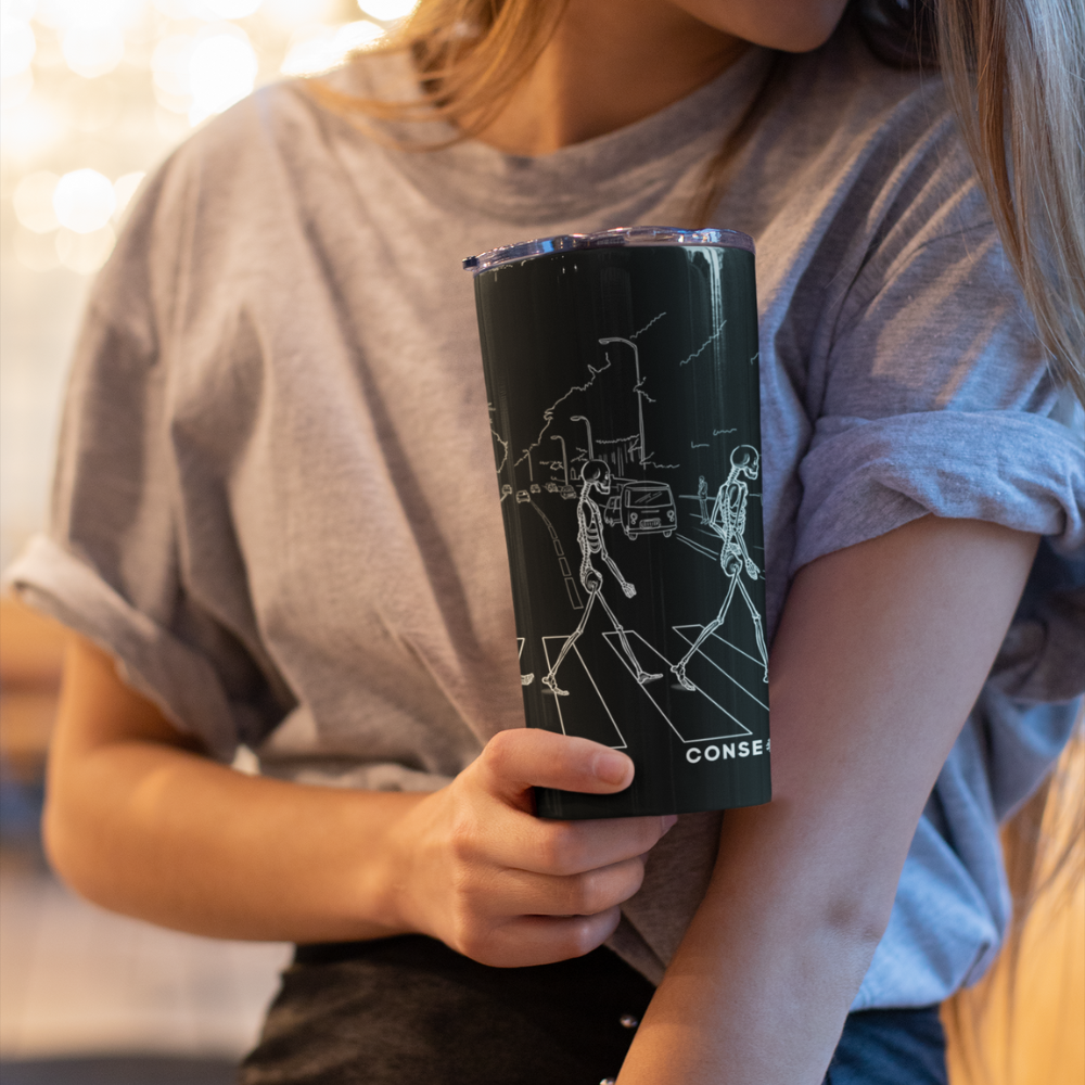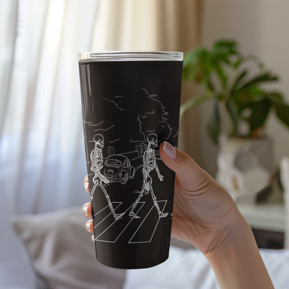Perfect for the home, haunted office, or as a spooktacular surprise, the Crossbones Road 20 oz Tumbler fuses functionality with a playful nod to the season. Crafted from durable stainless steel, this 20 oz tumbler boasts double-wall insulation to keep your elixirs steaming hot or refreshingly cool, no matter the witching hour. Featuring a delightfully haunting skeletal sketch, this tumbler will add a whimsical touch to your daily rituals. With a glossy finish and clear push-on lid, you can rest assured that your concoctions will be safely contained during all your ghostly escapades.