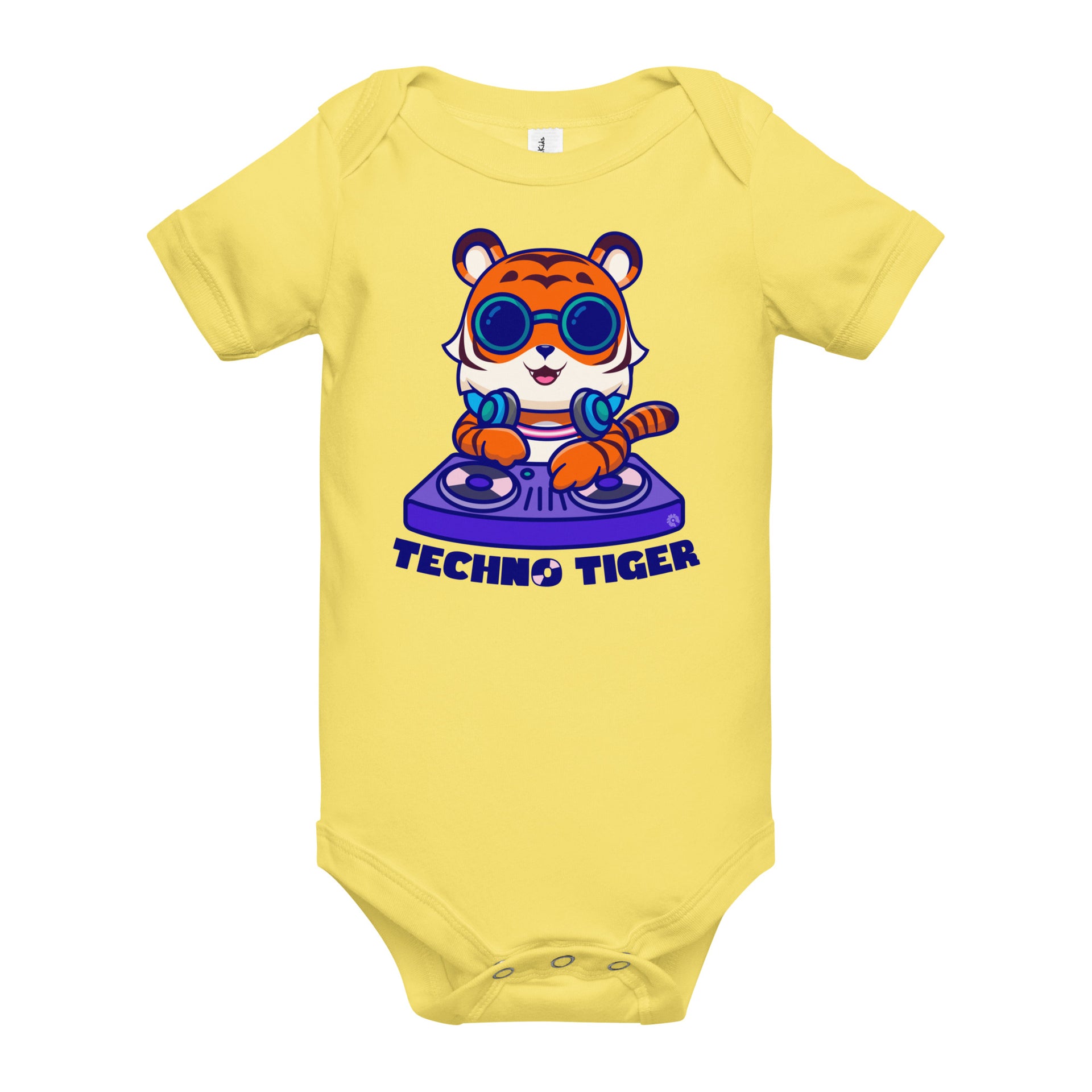 Introducing the Techno Tiger onesie, where baby comfort meets a techno-inspired flair! Crafted from 100% combed, ring-spun airlume cotton jersey, this onesie offers unbeatable softness for your little one's dance moves and playtime adventures. The envelope necklace and three-snap leg closure make dressing and diaper changes a breeze, keeping things hassle-free.