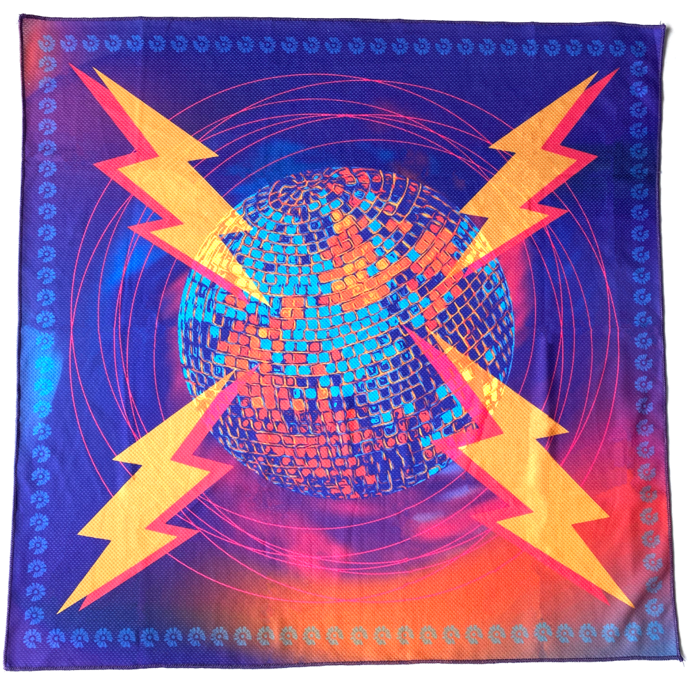 Featuring our gradiated disco ball and lightning bolt design in the center, this full-printed bandanna is bordered with the Consequence logo, all against a discogasmic splash of color. A four-quadrant design ensures that no matter how you fold or tie it, you'll always be showing your best colors.